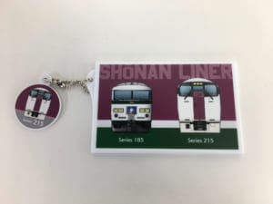 また同時発売の「湘南ライナータッチアンドゴー」は、185系と215系の「顔」がデザインされたICカードケースです。ICカード乗車券を破損や変形から守るほか、カバン等につけるのに便利なボールチェーン付きです。185系と215系の「顔」がデザインされたチャームも付いています。