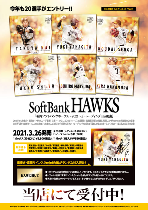 トレーディングmini色紙「福岡SoftBankホークス~2021~」は3月26日発売決定!