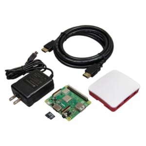 Raspbian OSイメージを書き込んだmicroSDが付属します。モニタ、マウス、キーボードは付属しません。別途ご用意ください。