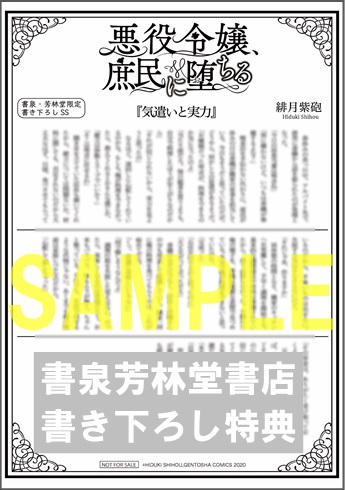 6月26日発売 『悪役令嬢、庶民に堕ちる』をお買い上げの方に書泉限定書き下ろしSSペーパーをプレゼント!