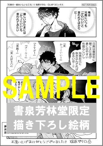 7月22日発売 キールコミックス『兄貴の一番おいしいところ』をお買い上げの方に書泉限定描き下ろしペーパーをプレゼント!