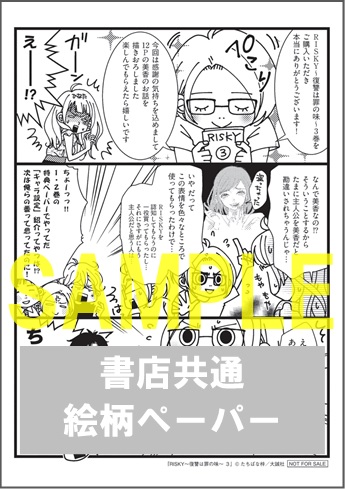 8月19日発売 オンリーリップスコミックス『RISKY〜復讐は罪の味〜3』をお買い上げの方に書泉限定描き下ろしペーパーをプレゼント!